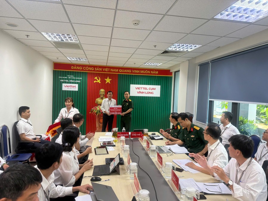 Ngày 12/12/2025, Tại hội trường Viettel Vĩnh Long, Ban Giám đốc Viettel Vĩnh Long đã tổ chức buổi trao tiền hỗ trợ cho thân nhân của Đ/c Châu Hữu Cương – PKD bị ảnh hưởng bởi đợt mưa lũ nghiêm trọng vừa qua.
