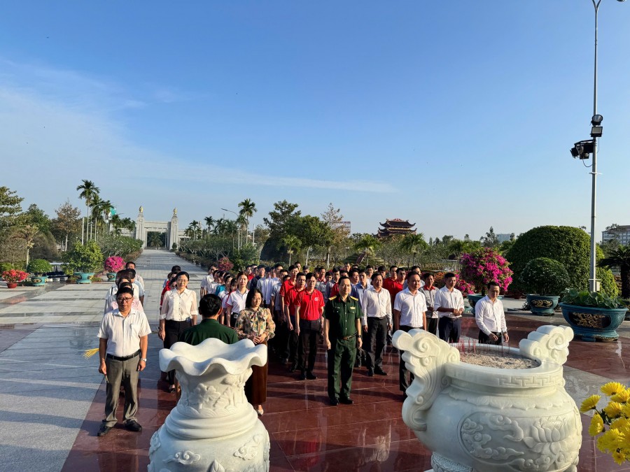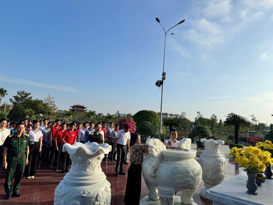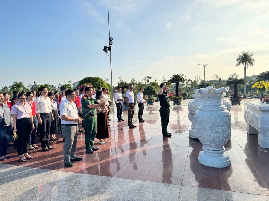 Trong không khí trang nghiêm và thành kính, đoàn đã dành phút mặc niệm, dâng hương, dâng hoa bày tỏ lòng biết ơn sâu sắc đối với những Anh hùng Liệt sĩ, những người con ưu tú của dân tộc đã anh dũng hy sinh vì sự nghiệp đấu tranh giải phóng dân tộc, thống nhất đất nước, bảo vệ độc lập, chủ quyền và toàn vẹn lãnh thổ Tổ quốc.