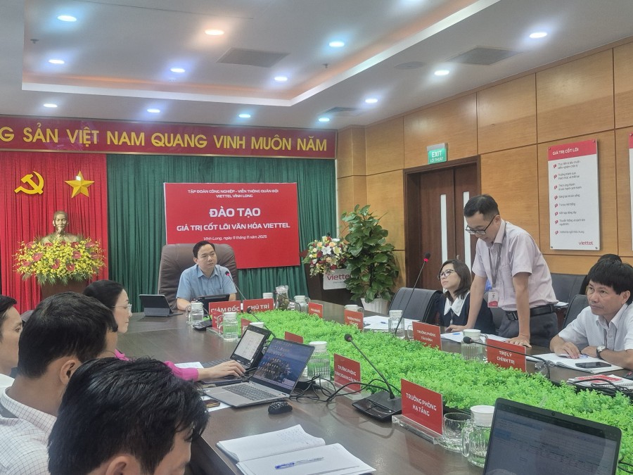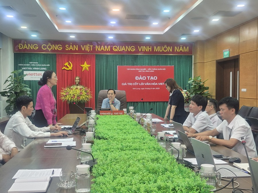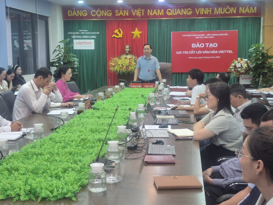 Nhằm lan tỏa tinh thần “Văn hóa tạo nên sức mạnh Viettel”, Giám đốc Viettel Vĩnh Long - Trung tá Mai Văn Hậu đã trực tiếp tổ chức buổi đào tạo chuyên đề về giá trị cốt lõi văn hóa Viettel cho toàn thể cán bộ, nhân viên trong đơn vị.