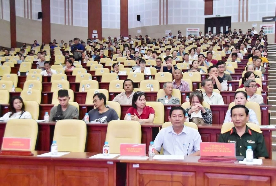 Tham dự hội nghị có đồng chí Nguyễn Tuấn Kiệt- Phó Trưởng Thuế tỉnh Vĩnh Long; Trung tá Mai Văn Hậu- Giám đốc Viettel Vĩnh Long; Phạm Minh Thuỷ- Trưởng Thuế cơ sở 5; các nhà cung cấp giải pháp, ngân hàng và 750 đại biểu hộ kinh doanh trên địa bàn phường Trà Vinh.