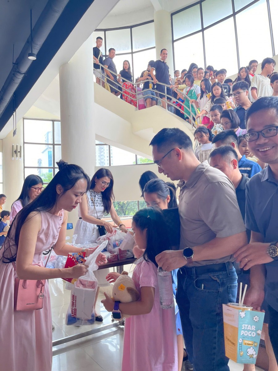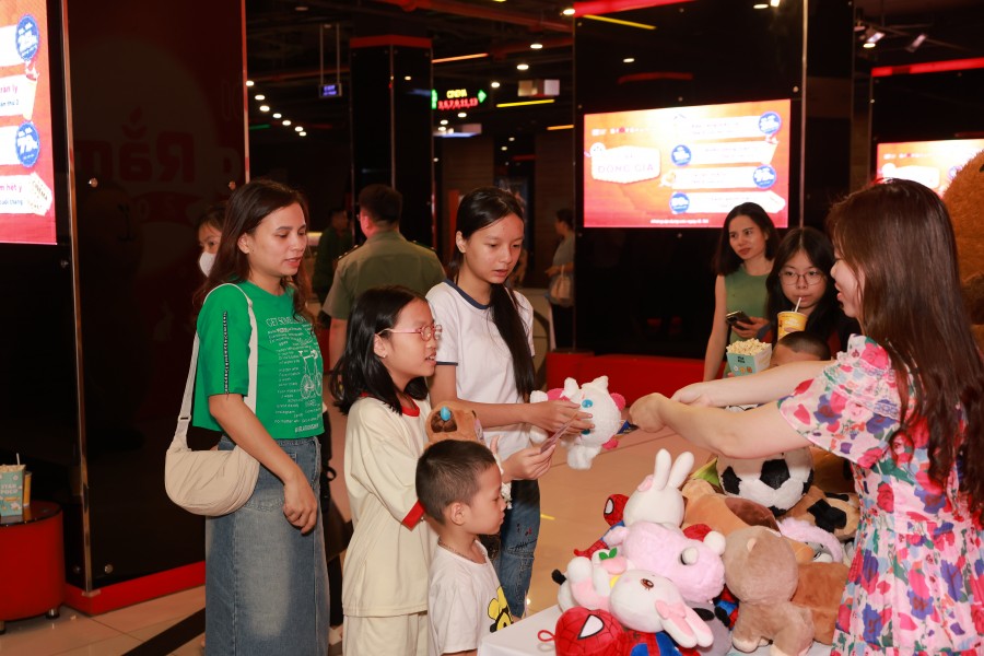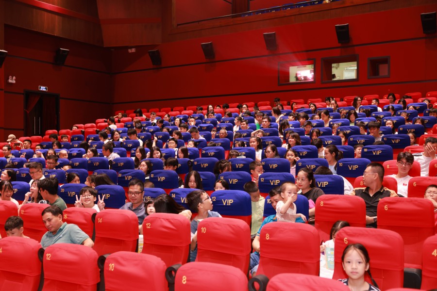 Ngay từ sảnh đón, các em nhỏ đã háo hức chụp ảnh cùng hai nhân vật mascot Gấu Pooh và Capybara. Những chú gấu bông xinh xắn được trao tận tay càng làm không khí thêm rộn ràng. Trong rạp chiếu, niềm vui tiếp nối khi các gia đình cùng nhau thưởng thức phim: Mưa đỏ dành cho các bạn lớn và bố mẹ, mang lại nhiều xúc động với câu chuyện lịch sử đầy nhân văn; trong khi các em nhỏ say mê với bộ phim thiếu nhi Bí kíp luyện rồng, một hành trình phiêu lưu đầy màu sắc, nuôi dưỡng trí tưởng tượng, tình bạn và lòng dũng cảm. Khép lại buổi sáng, phần quà ăn nhẹ KFC mang đến cho các con sự bất ngờ và thích thú.