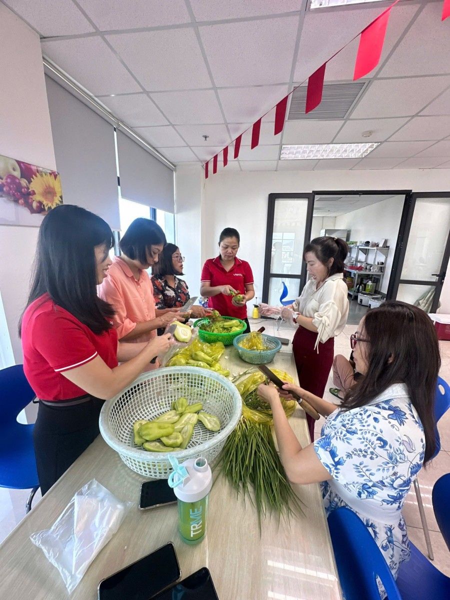 Chị em Hội phụ nữ cùng nhau chuẩn bị chu đáo nguyên vật liệu