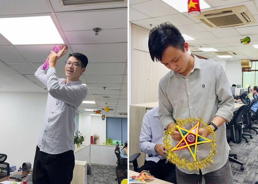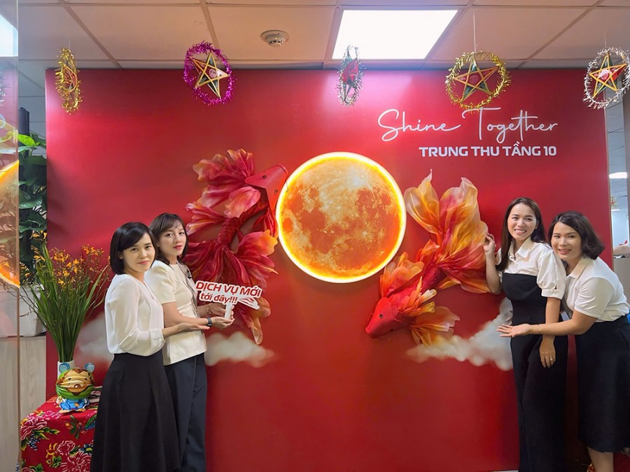 Khi hoàn thiện, không gian Trung thu rực rỡ sắc màu đã trở thành điểm đến yêu thích của nhiều đồng nghiệp trong toà nhà số 1 Giang Văn Minh, các “du khách” đến từ các đơn vị trong tổng công ty hứng thú đến check-in tại tầng 10 – Đại bản doanh của Trung tâm dịch vụ mới.