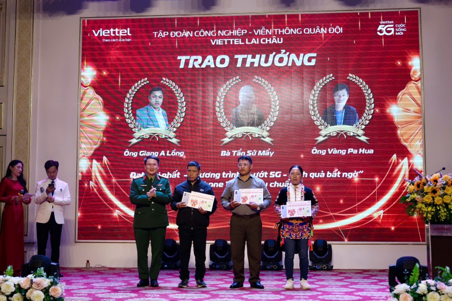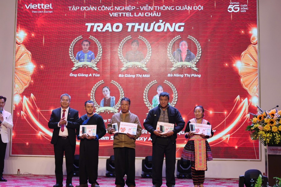 Trong khuôn khổ chương trình, Viettel Lai Châu đã trao thưởng cho các khách hàng trúng giải chương trình “Lướt 5G – Rinh quà bất ngờ”, đồng thời tôn vinh 03 tập thể và 34 cá nhân xuất sắc năm 2025 – những nhân tố tiêu biểu góp phần quan trọng vào những thành tựu của Viettel Lai Châu trong năm 2025.