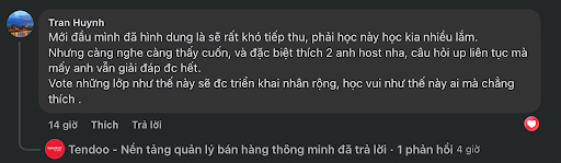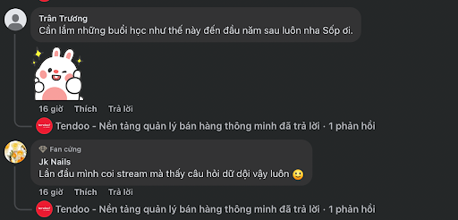 Ấn tượng hơn cả, nhiều Hộ kinh doanh chia sẻ rằng họ xem livestream “như đi học thật”. Thay vì chỉ lướt qua, chỉ số xem trung bình là 79 phút cho thấy có hàng chục ngàn người đã ngồi lại suốt gần 2 giờ, ghi chép, đặt câu hỏi, theo dõi từng phần trình bày với sự nghiêm túc hiếm thấy trong một chương trình phát trực tiếp. Không khí “học tập” này được thể hiện rõ qua loạt bình luận tích cực ngay trong phiên live.