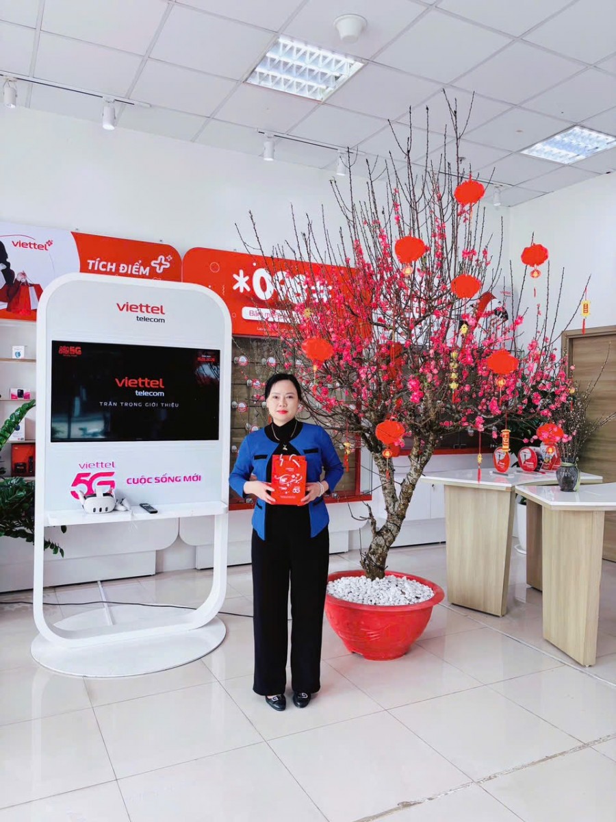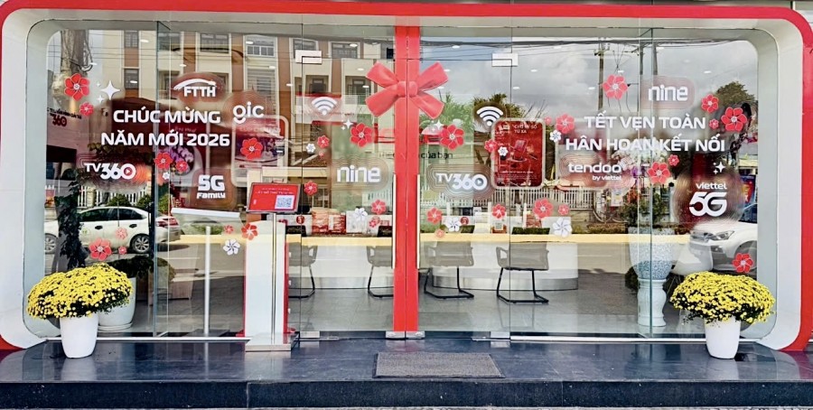 Hòa chung không khí những ngày cận Tết, cửa hàng Viettel đã được khoác lên diện mạo mới với sắc xuân tươi sáng, mang theo không khí rộn ràng của một mùa Tết đang đến gần. Từng chi tiết trang trí được chăm chút nhằm tạo điểm nhấn thân thiện, tươi mới chào đón khách hàng ghé thăm và cảm nhận không khí Tết ngay từ những bước chân đầu tiên đến cửa hàng