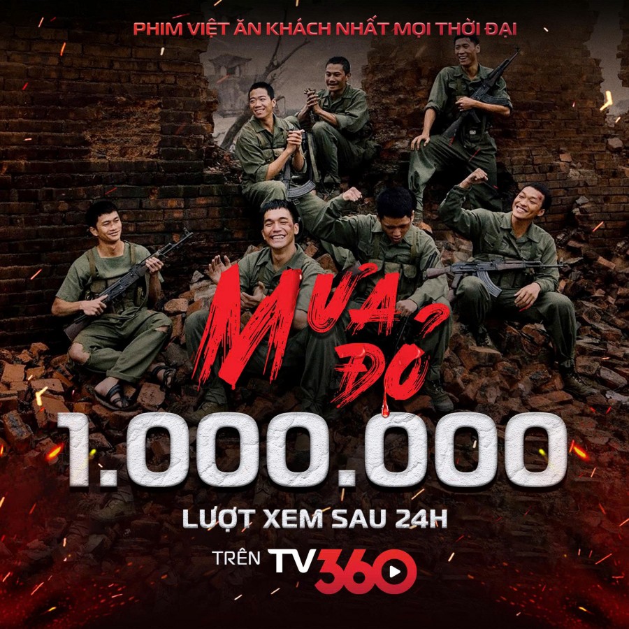 Nếu ngày đầu tiên ra rạp Mưa đỏ bán được gần 500.000 vé, thì trên TV360, sau 24h, bộ phim bứt phá, chạm mốc gần 1 triệu lượt xem.