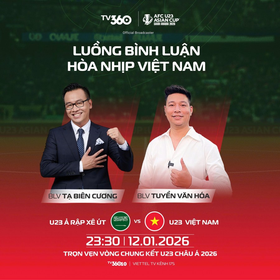 Với sự kết hợp giữa bóng đá đội tuyển trẻ, các giải VĐQG châu Âu và các nội dung bổ trợ mang tính dẫn dắt, TV360 đang tạo ra một dòng chảy nội dung liền mạch trong giai đoạn cao điểm của mùa giải. Điều này không chỉ góp phần gia tăng thời lượng xem mà còn củng cố hình ảnh TV360 là điểm đến quen thuộc của người hâm mộ thể thao. Đặc biệt với AFC cup, khán giả có thể lựa chọn xem 2 luồng bình luận: Luồng 1 — bình luận chuyên môn với sự tham gia của BLV Quang Tùng và BLV Hoàng Long: nghiêng về thông tin trận đấu sâu, đúng kiểu “chuyên gia nói chuyện”. Luồng 2 — bình luận kiểu “Hòa nhịp Việt Nam”: vui vẻ, gần gũi, cảm xúc như đang xem cùng bạn bè với sự tham gia của BLV Tạ Biên Cương và Tuyền Văn hóa.