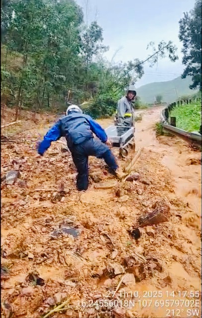 Khi đường bị chia cắt, phương tiện không thể tiếp cận, lực lượng kỹ thuật Viettel Huế cùng với lực lượng Trung tâm kỹ thuật KV2 đã quyết định đi bộ qua quãng đường rừng trơn trượt, lội bùn đất, mang thiết bị để ứng cứu trạm phát sóng. Dù mưa xối xả, áo quần ướt sũng, nhưng với tinh thần “Không để thông tin gián đoạn – dù chỉ một giây”, họ vẫn kiên định tiến bước, hoàn thành nhiệm vụ.