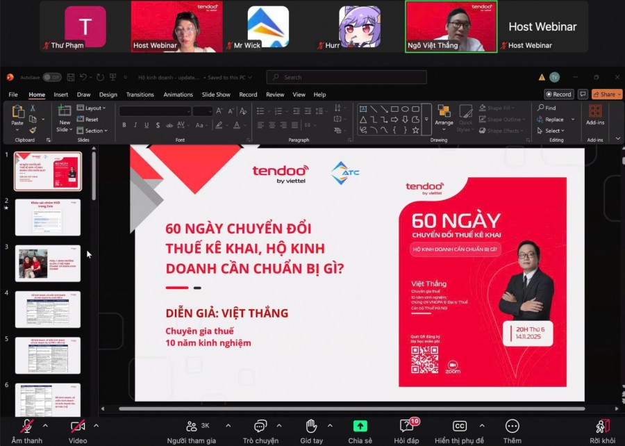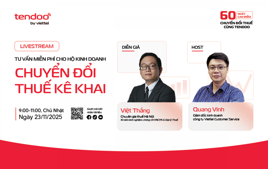 Sáng Chủ nhật ngày 23/11/2025, Tendoo phối hợp với Chuyên gia từ Thuế Hà Nội tổ chức phiên livestream tư vấn miễn phí cho Hộ kinh doanh.