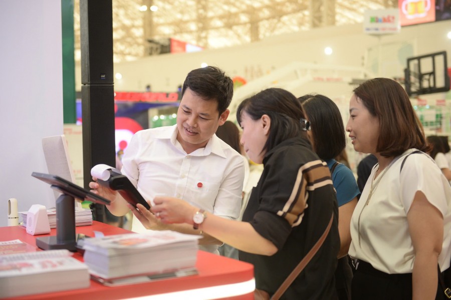 Nhiều khách hàng lần đầu được giới thiệu nền tảng quản lý bán hàng thông minh Tendoo của Viettel tại Hội chợ Mùa Thu.