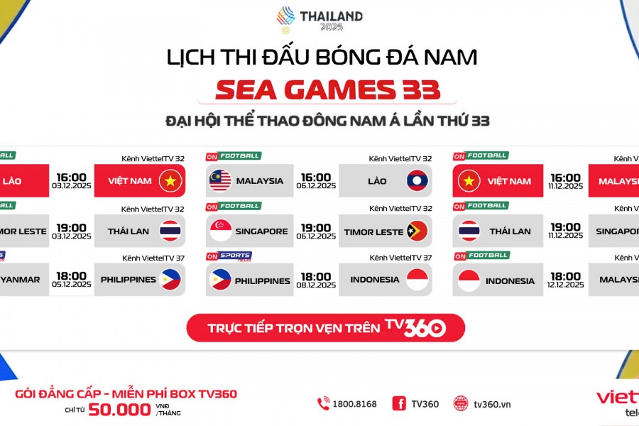 TV360 mở màn tháng 12 với loạt trận đấu U22 Việt Nam tại SEA Games 33 và kho...