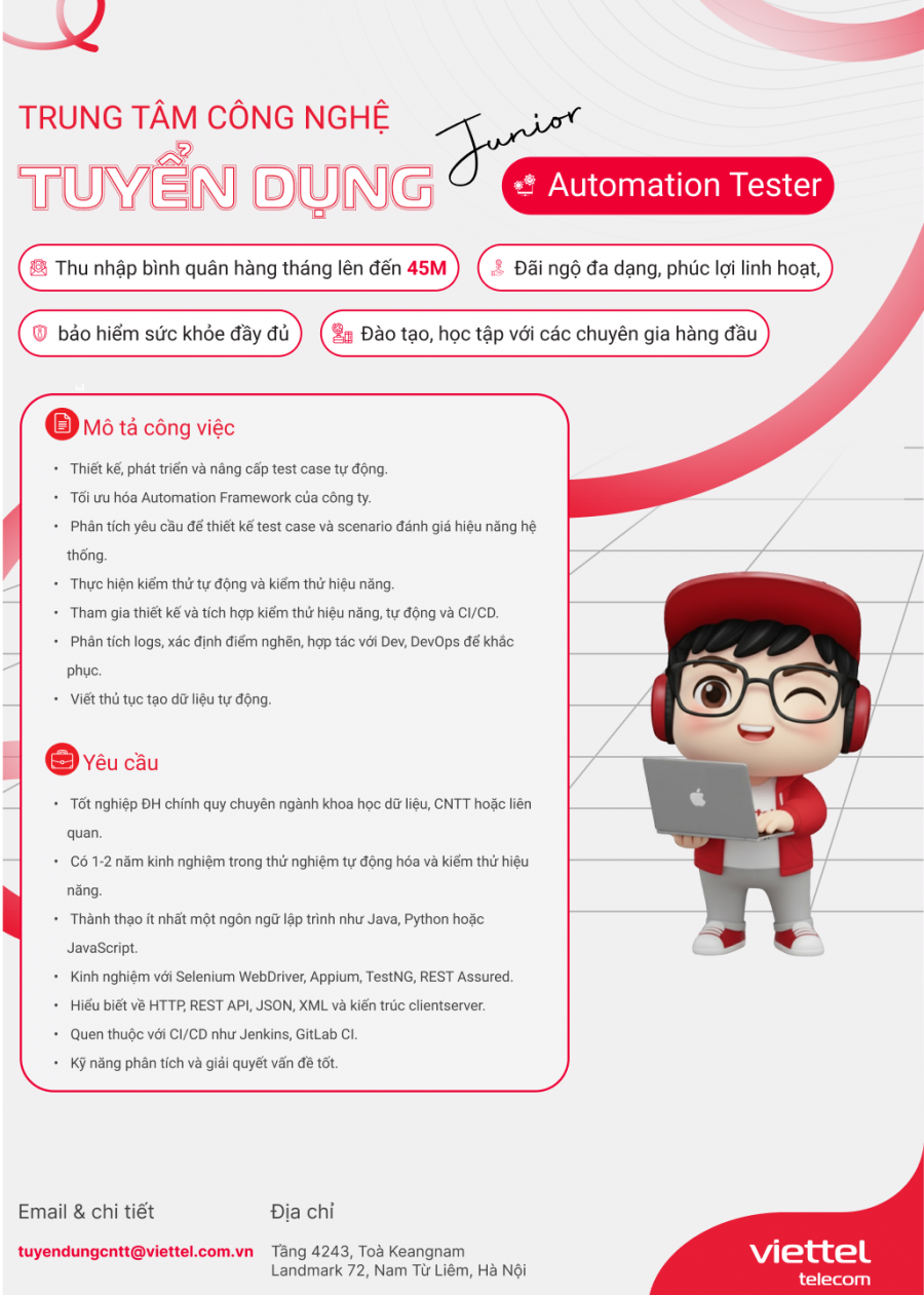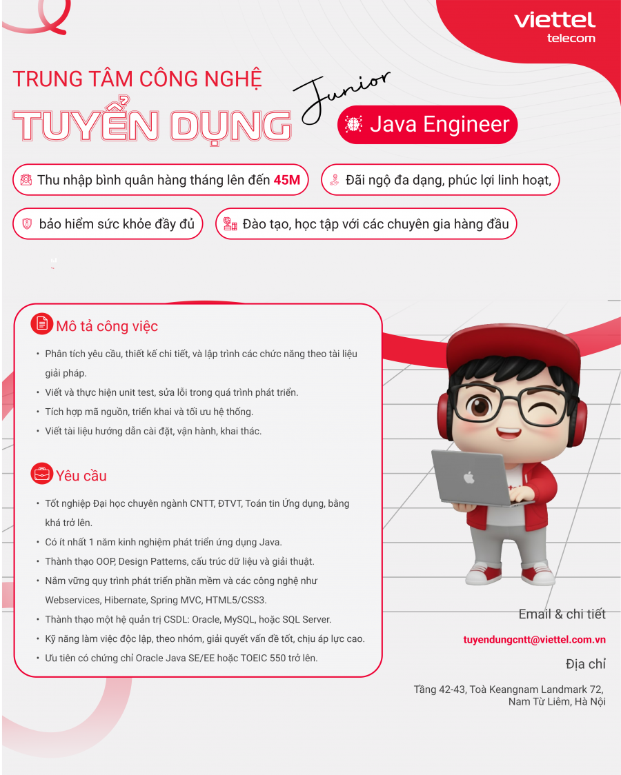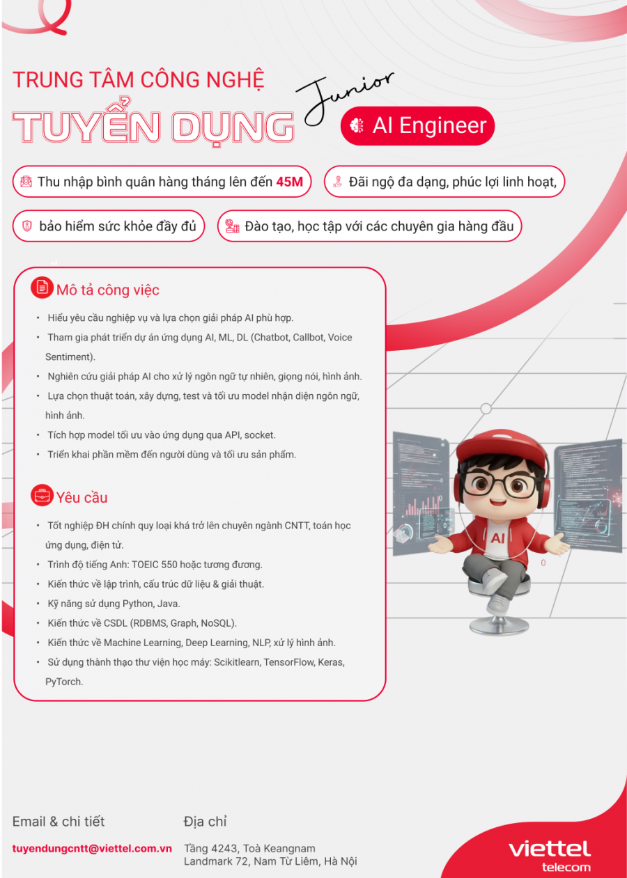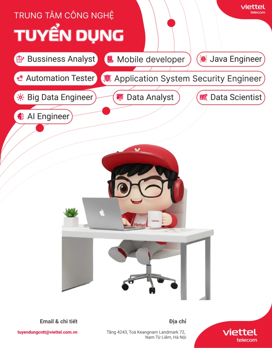 - Hoặc gửi qua: tuyendungcntt@viettel.com.vn (nếu gửi từ email ngoài)