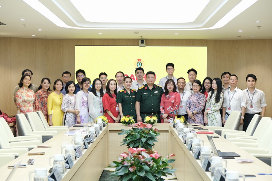 Đại hội vinh dự đón tiếp sự hiện diện của Ban giám đốc trung tâm, đồng chí Thiếu tá Phạm Thu Hường - Bí thư Chi bộ, Giám đốc Trung tâm Dịch vụ mới; đồng chí Thiếu tá Nguyễn Thành Trung – Phó Bí thư Chi bộ, Phó Giám đốc Trung tâm Dịch vụ mới cùng toàn thể đoàn viên công đoàn bộ phận.