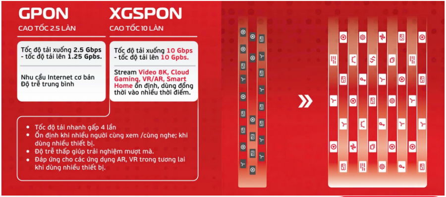 - Tốc độ đích thực 1 Gbps, khách hàng được trang bị miễn phí thiết bị chuẩn công nghệ XGSPON