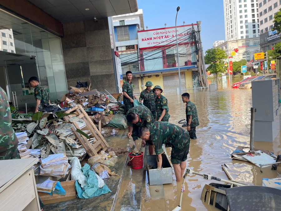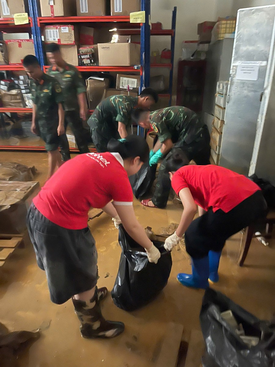 Khi nước rút, trong hai ngày 09–10/10, hơn 30 cán bộ, chiến sĩ thuộc các Trung đoàn trực thuộc Quân khu 1; Tiểu đoàn đặc công 20; Lữ đoàn 575 và Trung đoàn 209, Sư đoàn 312, Quân đoàn 12, với tinh thần “vượt nắng thắng mưa” đã hỗ trợ Viettel dọn dẹp, tổng vệ sinh trụ sở, kho hàng, hầm xe…