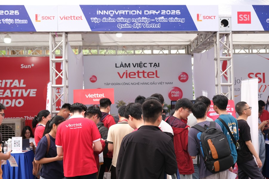Viettel Telecom tại SOICT Innovation Day 2026 thu hút đông đảo sinh viên, ghi nhận hơn 100 lượt ứng tuyển trong buổi sáng cuối tuần vừa qua.
