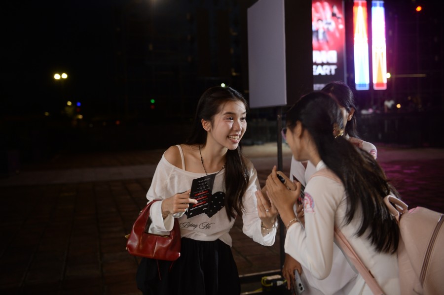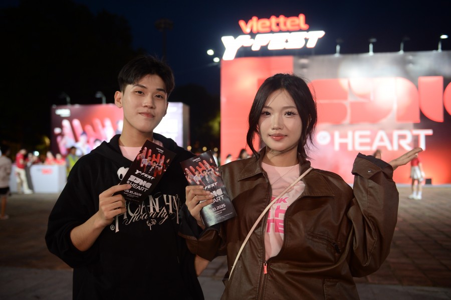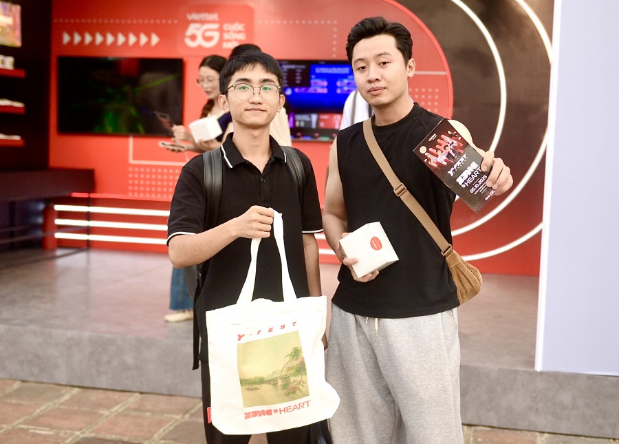 Hai anh chàng điển trai người Huế - An Khang và Huyền Linh check in với tấm vé concert Viettel Y-Fest tại khu vực đổi vé